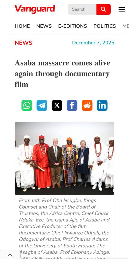 On October 7 2025, at the memorial held in Asaba’s Traditional Parliament, ‘Ogwa Ukwu,’ the names of the slain were read aloud to the King—the Asagba of Asaba—by representatives of the Diokpa, the eldest heads of each of the five villages.