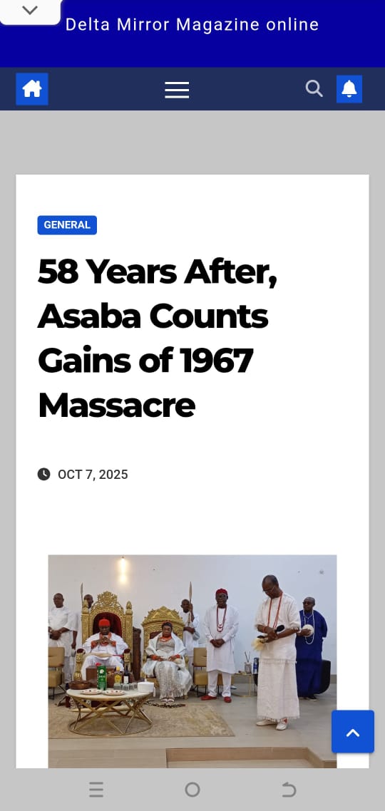 Fifty-eight years after the tragic Asaba massacre, the Asagba of Asaba, His Royal Majesty, Obi (Prof.) Epiphany Azinge (SAN), has renewed calls for national recognition of the victims, urging President Bola Ahmed Tinubu to immortalise them through an official presidential apology and the establishment of a Federal University in Asaba. (7th October 2025)